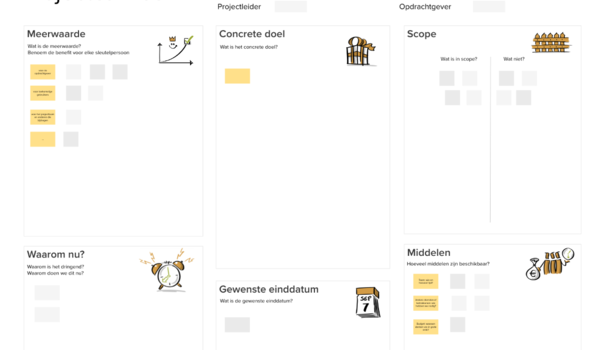 Een gloednieuw project op je bord, daar krijg je als projectleider energie van! Maar niet iedere opstart verloopt even vlot ... Wil jij projectmatig leren denken met behulp van een duidelijk startdocument? Kijk je uit naar een tool die je houvast biedt gedurende het hele projectverloop? Propellors Projectcanvas is een gebruiksvriendelijke invulfiche die je helpt om projecten beheersbaar te maken én te houden. Ontdek ons gratis werkinstrument en zet je project stevig op de rails.